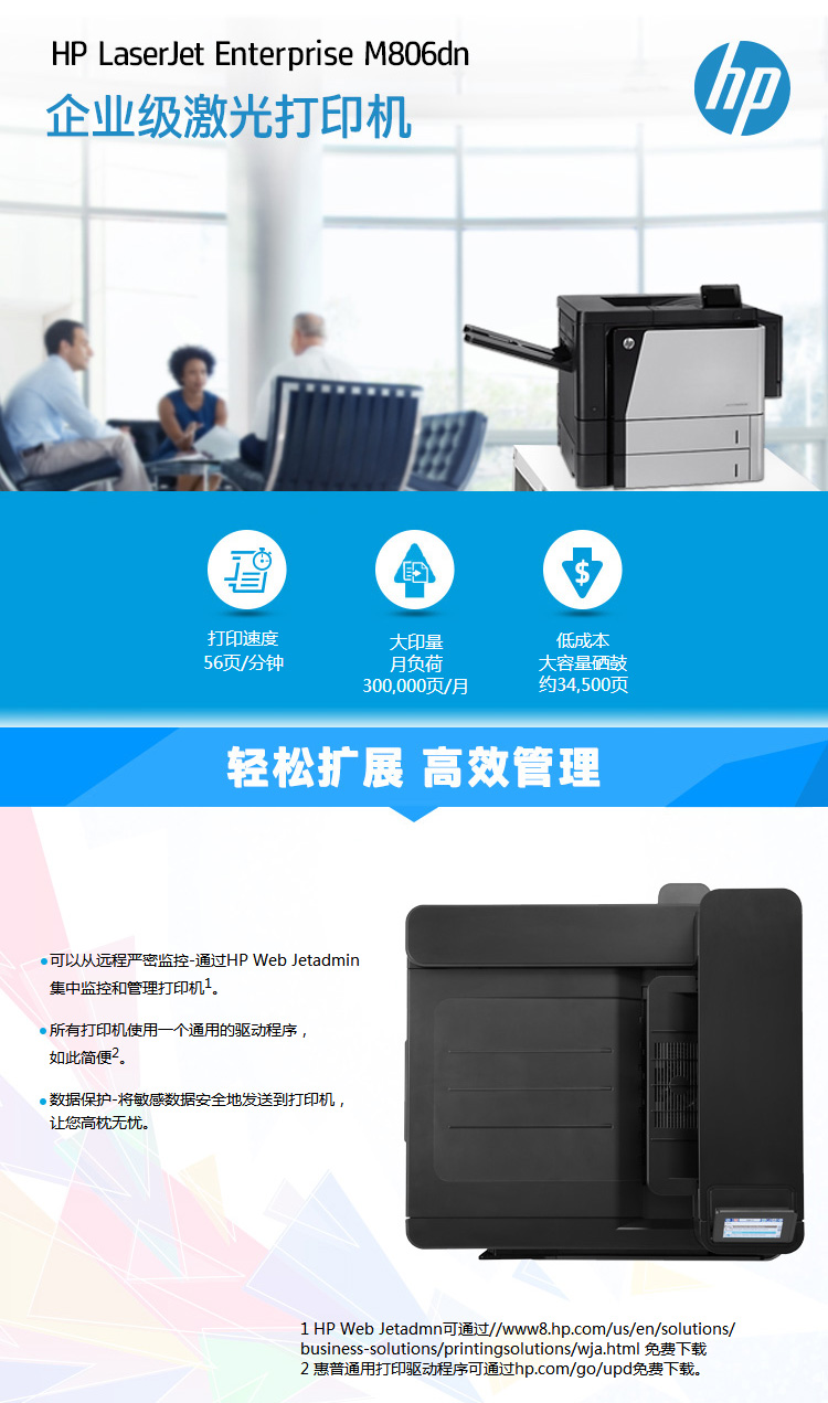 惠普(HP)LaserJet Enterprise M806dn A3黑白激光打印機